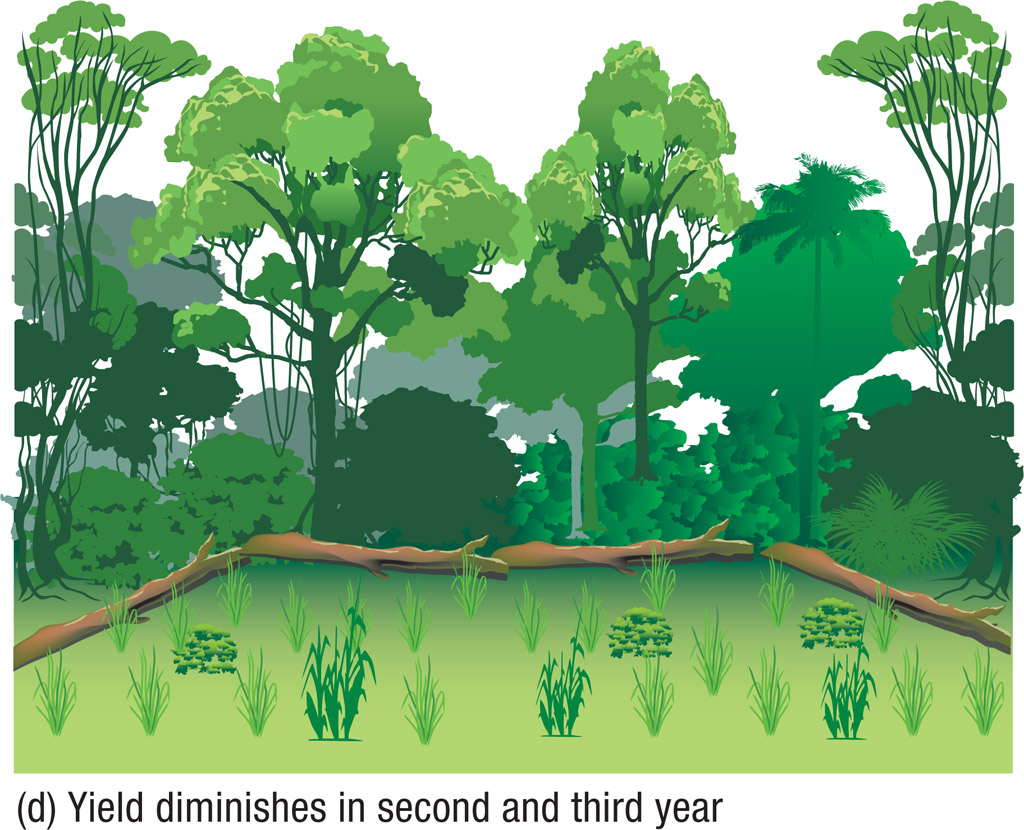 If shifting cultivators are left undisturbed, they too have a minimal impact on the rainforest environment in which they are usually found. The cycle of shifting cultivation is shown in Sources 3.12 and 3.13.